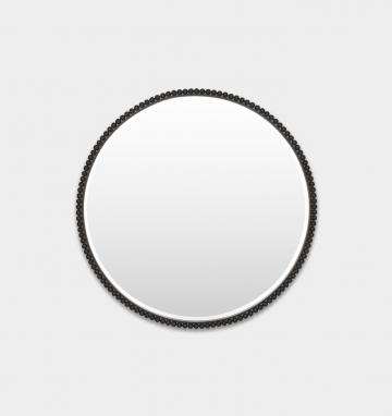 The Estelle Mirror is a grand statement mirror with its embellished beveled edge and a beaded iron outer frame.