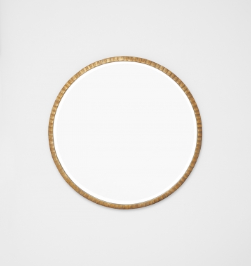 Classic circular metal-framed mirror with a ribbed like edging.